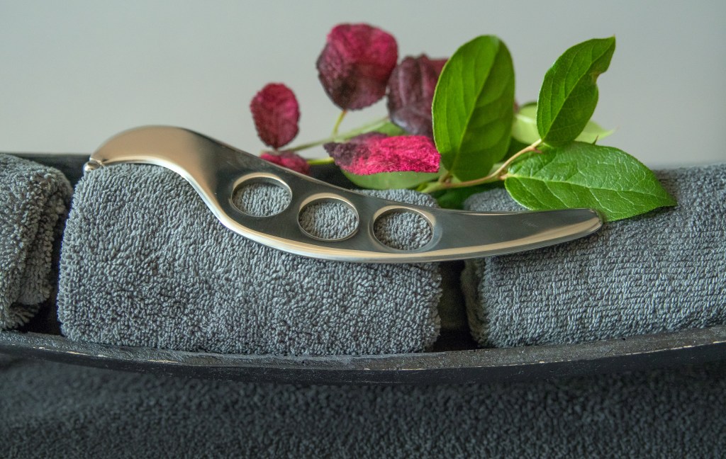 Garston bodyscraping bestaat uit het schrapen met een speciale schrapers over de huid waarop olie is aangebracht.